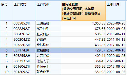如果从年内涨幅来看,截至9月5日收盘,该股年初至今涨幅429.57%,在北证A股中排名第一。